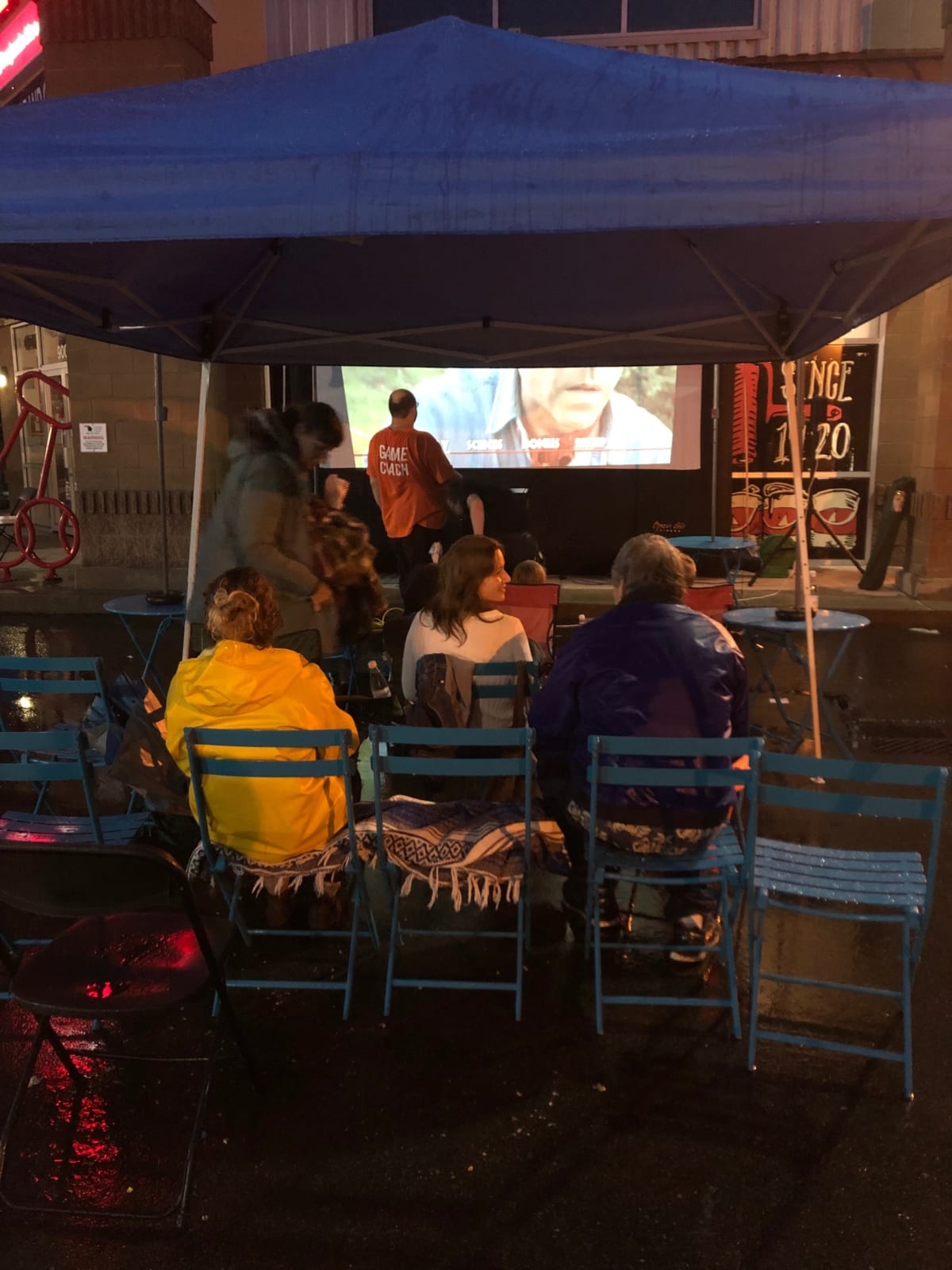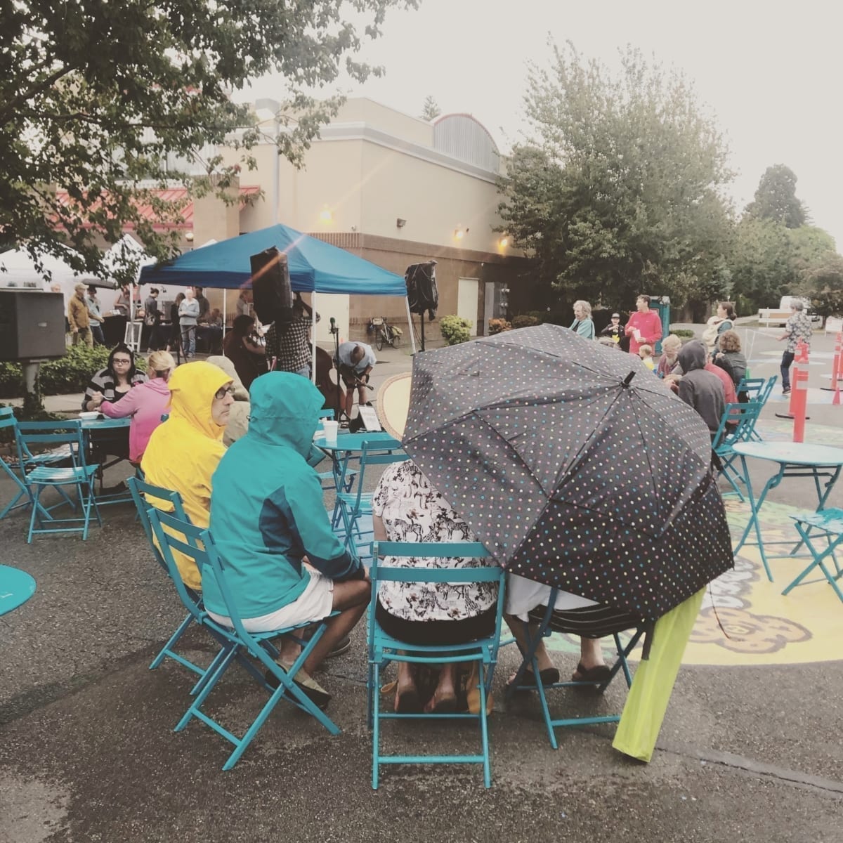 We Worried About Smoke... As we planned the summer street festival series, we worried about the smoke forcing us to cancel August. Instead we had a heavy fall of rain - that didn't deter folks from the food truck and music. Several brave neighbors even waded through the evening to watch the original Jurassic Park. A fun night of food, music, and dinosaurs.