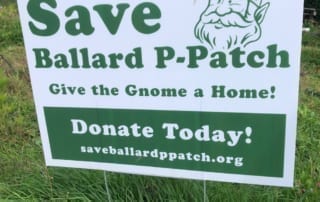 Save the Ballard P-Patch! The Ballard P-Patch is an important part of our community. The garden grows and donates food to the Ballard Food Bank, offers garden space to neighbors, and hosts educational and arts events. The garden is also a beautiful green space, untouched by development. [...]